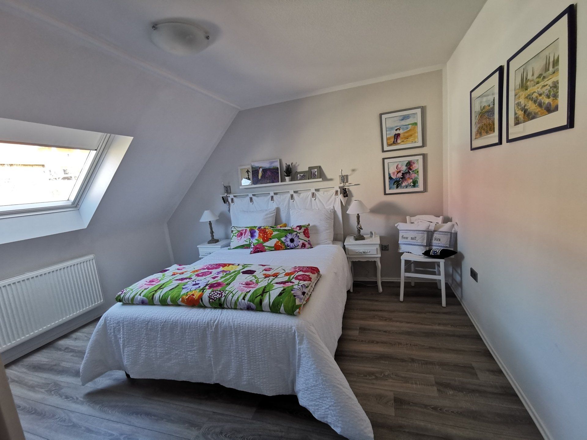 Im offenen Wohnbereich, im 1 .OG, mit Zugängen zum überdachten Südbalkon, finden Sie eine moderne Einbauküche(Arbeitshöhe 90 cm) mit Theke, die Sitzgelegenheit für 2 Personen bietet. In der Küche gibt es einen großenKühl-Gefrierschrank, Kaffeemaschinen,Rührgerät mit Pürierstab,Toaster, Sandwichtoaster, Eierkocher, Wasserkocher sowie viele Kochutensilien. Geschirr, Gläser u. Besteck sind für 12 Personen vorhanden. Nebenan befindet sich das Esszimmer mit einem großen Tisch für 6 Peronen und Blick auf den Wiesengrund. Im hinteren Bereich des Raumes ist eine gemütliche TV Ecke (SAT TV, DVD Player und Stereoanlage. Wlan ist natürlich verfügbar.